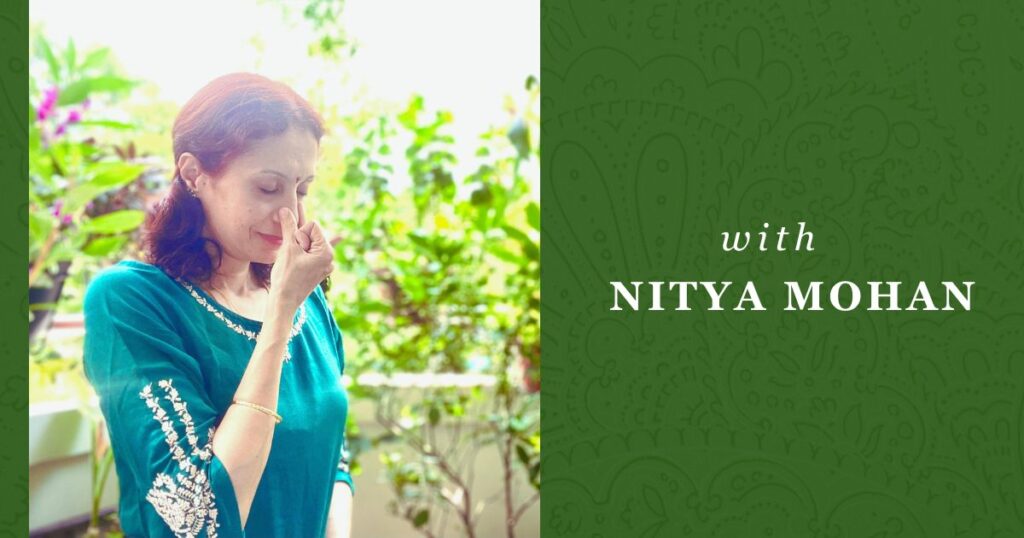 Nitya Mohan, daughter of A. G. Mohan and Indra Mohan, is trained in yoga from a very young age. She has been the director of Svastha Yoga & Ayurveda teacher training programs in Singapore for the past 25 years and has trained hundreds of teachers. Trained in Yoga, Chanting, Classical Indian music and Sanskrit, her unique areas of expertise combine traditional Raja yoga and Hatha yoga, along with knowledge of Sanskrit and Vedic chanting, with a graduate degree in Classical Indian music and ancient musical texts.
